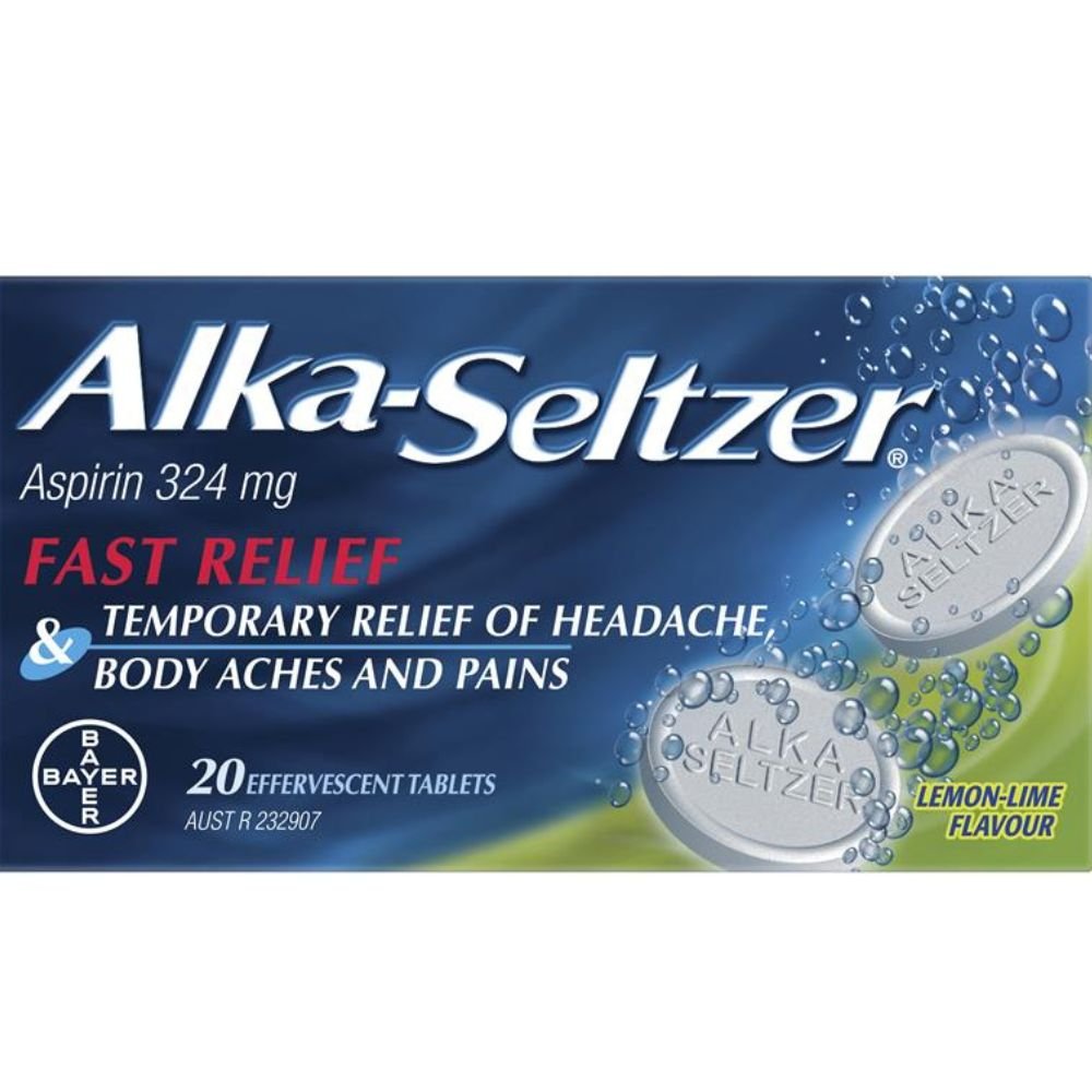 Alka-Seltzer Effervescent Tablets Lemon-Lime provide fast, temporary relief from headaches, body aches, and everyday pain. The soluble effervescent tablets dissolve quickly in water for rapid action and a pleasant Lemon-Lime taste.