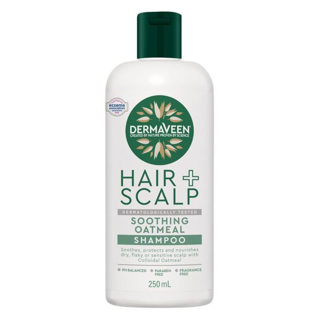 DermaVeen Oatmeal Shampoo is a gentle, dermatologically tested formula for dry, itchy, flaky, or sensitive scalps. Made with 100% natural colloidal oatmeal, it helps hydrate, soothe irritation, restore the skin barrier, and manage dandruff while cleansing hair gently. pH balanced, soap-free, fragrance-free, vegan friendly, and suitable for all hair types. Size: 250 mL.