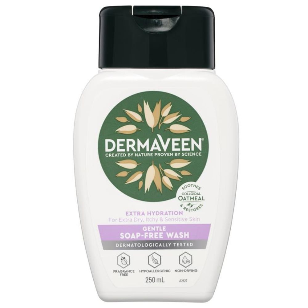 DermaVeen Extra Hydration Gentle Soap-Free Wash is a fragrance-free, hypoallergenic cleanser for extra dry, itchy, and sensitive skin. This non-foaming, pH-balanced formula cleanses without drying, helping maintain the skin’s natural moisture barrier. Vegan friendly and suitable for all ages, including eczema-prone skin. Size: 250 mL.